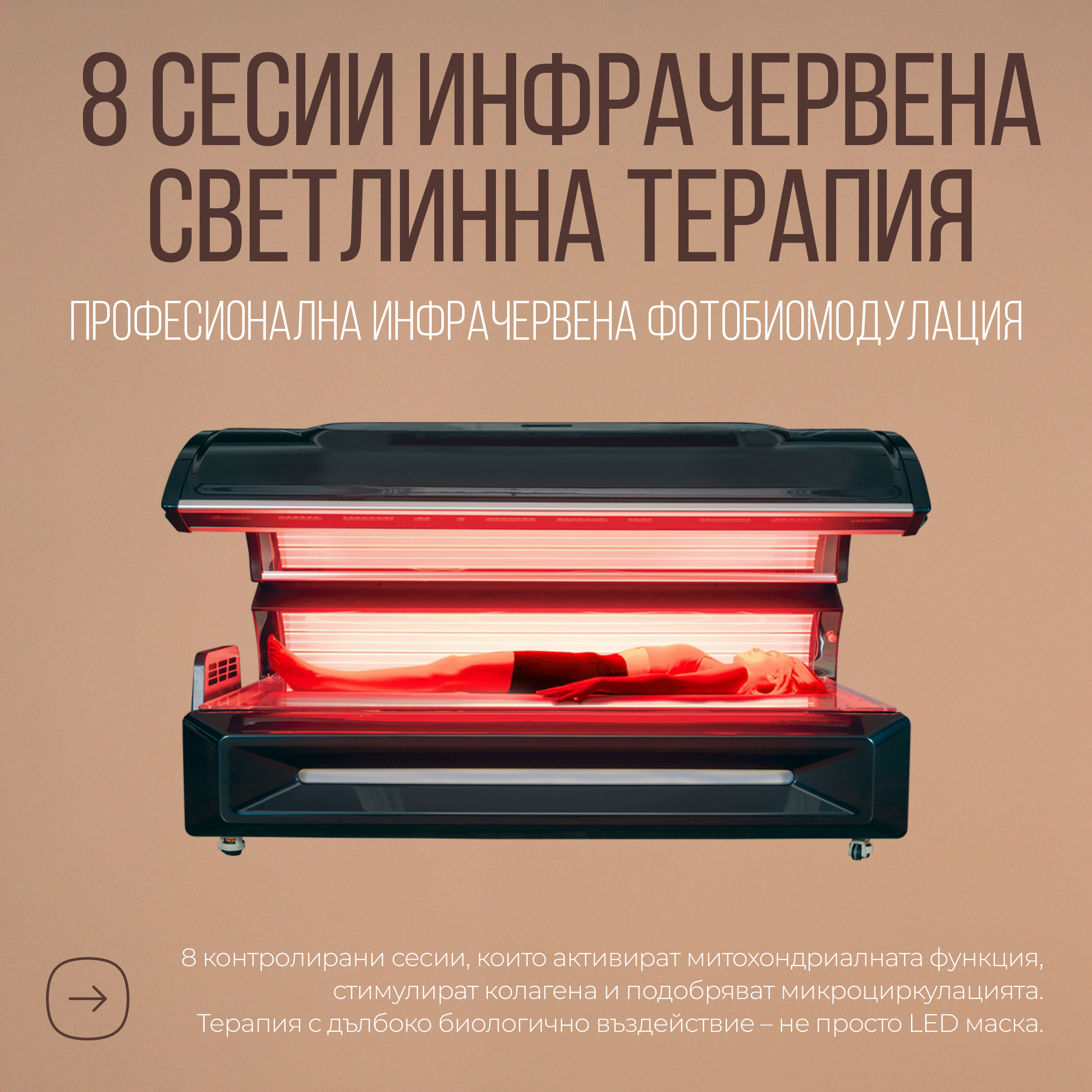 • 8 контролирани сесии инфрачервена фотобиомодулация